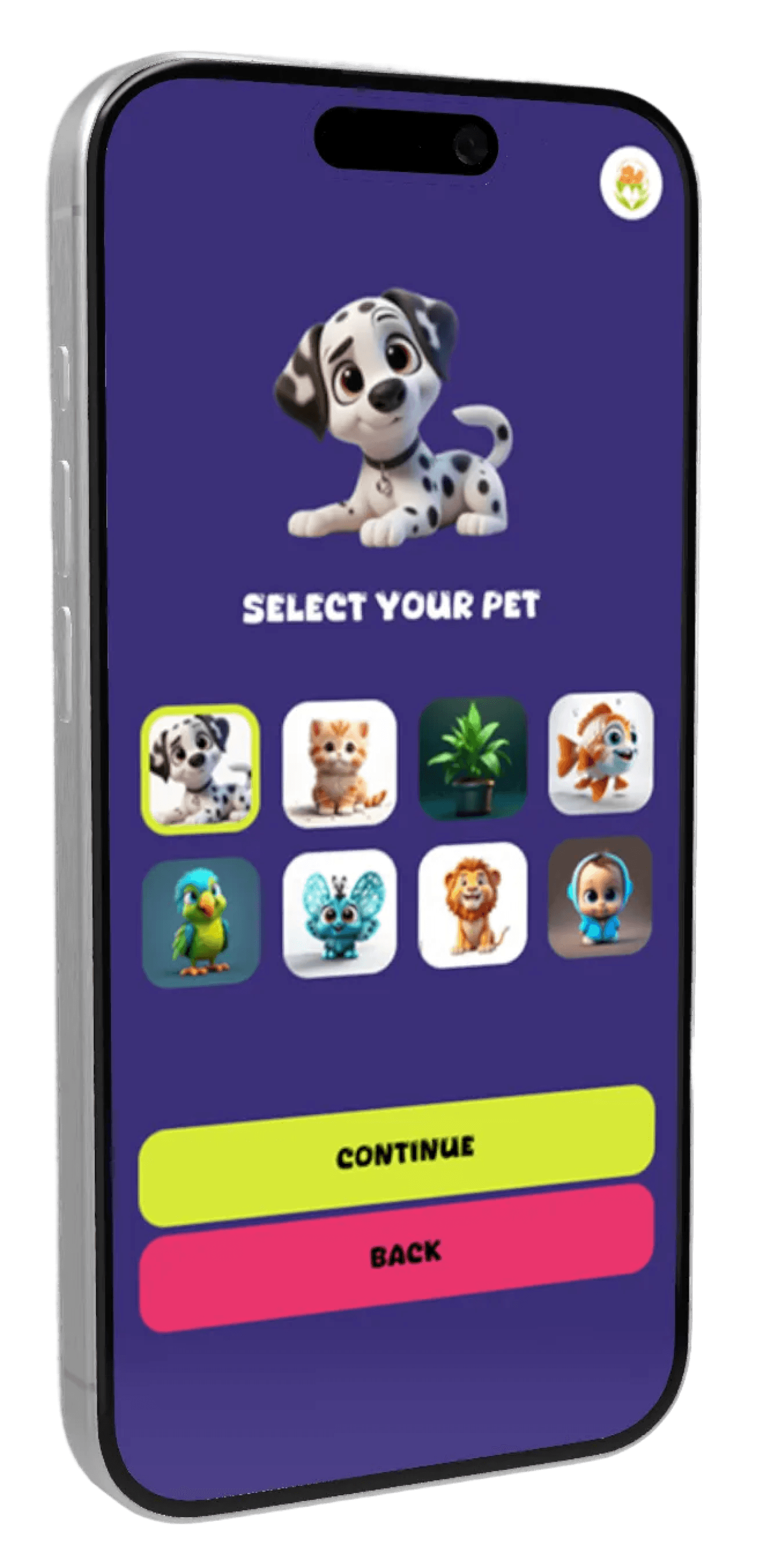 🥗 Gamified Tracking — Kids feed their virtual pet the same foods they eat, linking real behavior with digital play.