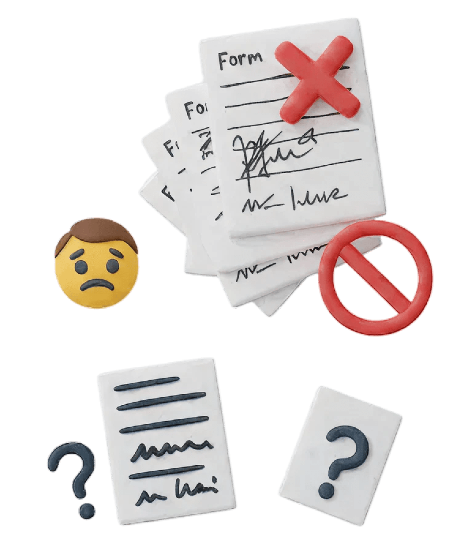 Complex terms and small fonts make forms hard to understand, leading to disinterest.