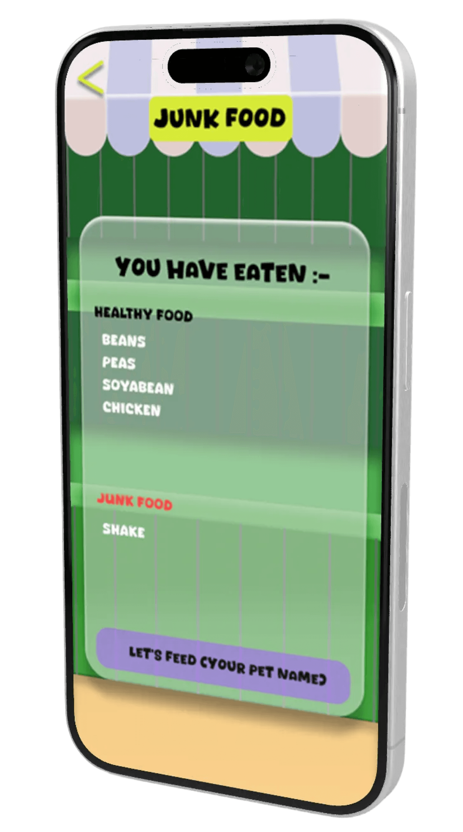 📚 Interactive Learning — The pet explains food value and builds nutrition awareness naturally.